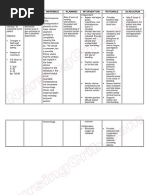 Nursing Care Plan Placenta Previa Pdf Placenta Childbirth